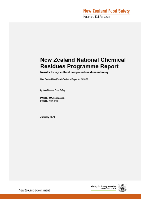 「New Zealand National Chemical Residues Programme Report Results for agricultural compound residues in honey」January 2020