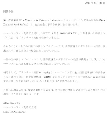 <ニュージーランド政府からの公式文書と和訳>