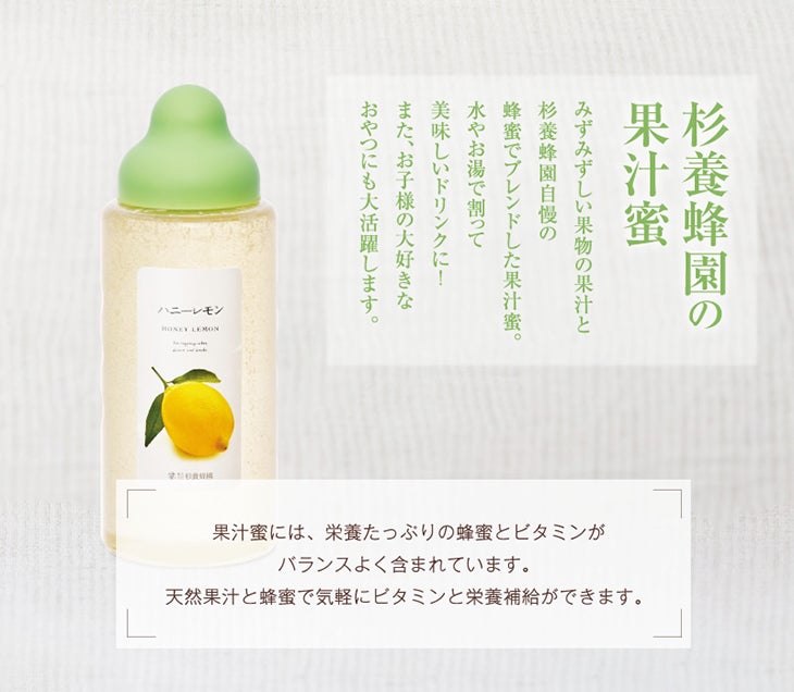 また、はちみつと果汁が分離することがありますが、品質上問題はありません。良く振ってご利用ください。